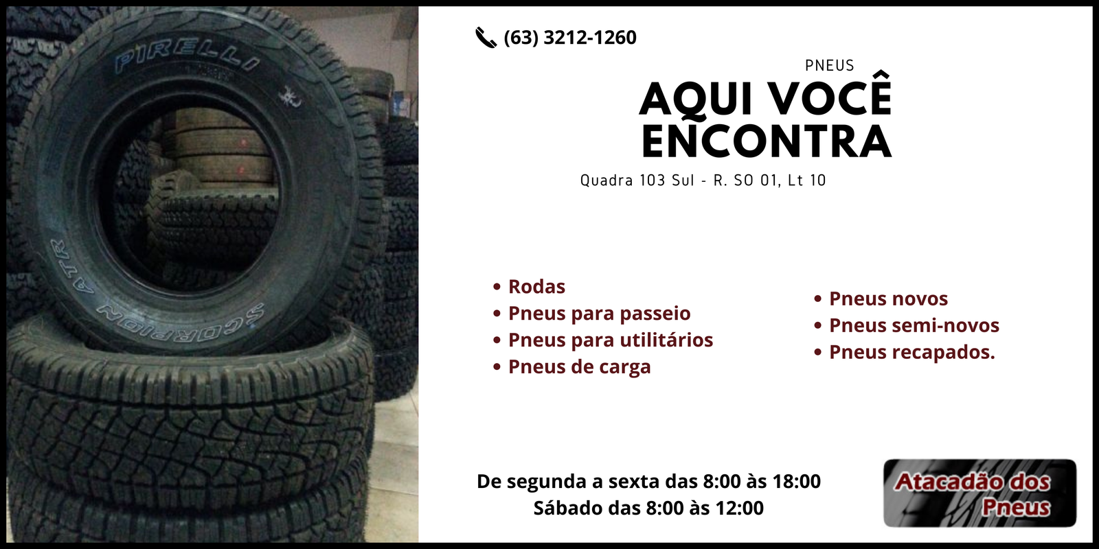 Conosco você encontra rodas, pneus para passeio, pneus para utilitários, pneus de carga, pneus novos, pneus semi-novos e pneus recapados.